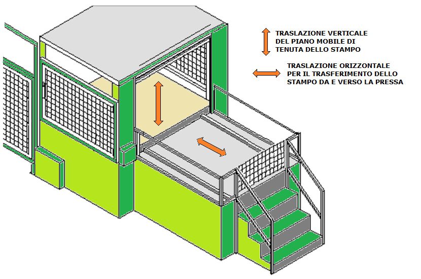 - traslazione dello stampo inferiore della matrice all'interno dell'area di pressaggio;